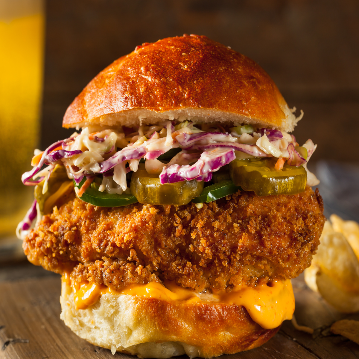 Nashville style chicken sandwich, choice of heat,comes with brioche bun, coleslaw and layered with comeback sauce.