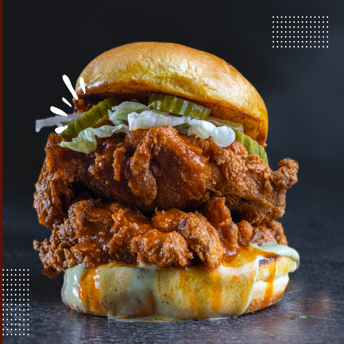 Double the meat, double the satisfaction! Fried deboned chicken 2 patties, sweet pickles and colesaw with comeback sauce on brioche bun .